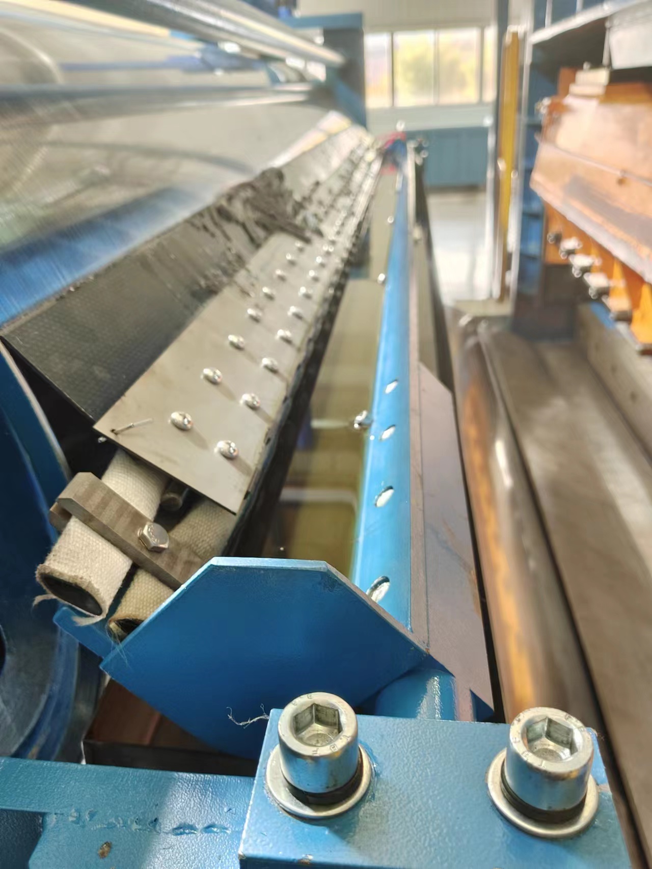 刀片因经常与高速旋转的辊面接触,磨损是必然的,因此,要定期更换刀片,确保刮刀装置能可靠、有效地为生产服务。
